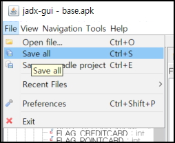 java 코드를 파일로 저장해서 쉽게 보려면 File -> Save all을 누르면 파일로 저장할 수 있다.