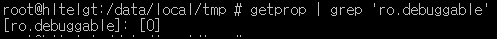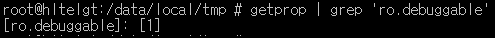 그 다음 adb shell 접속하여 ro.debuggable 값을 확인한다.