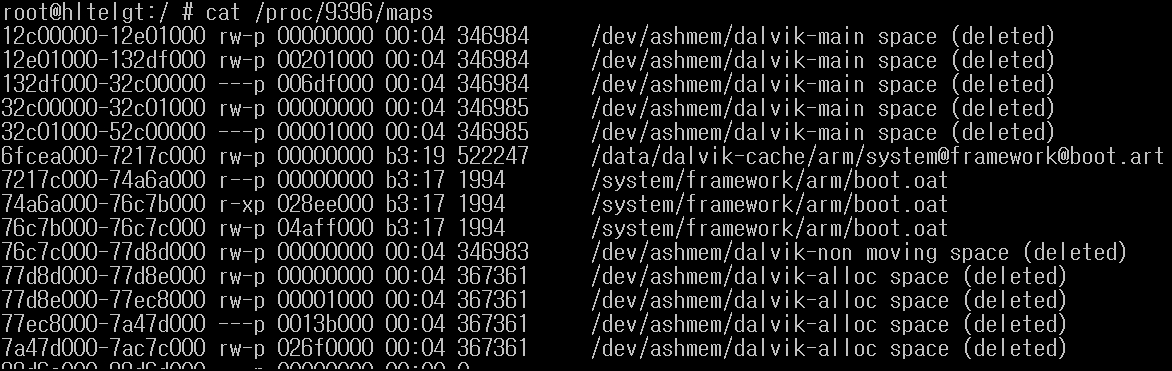 # cat /proc/[PID]/maps // 메모리 맵 확인법